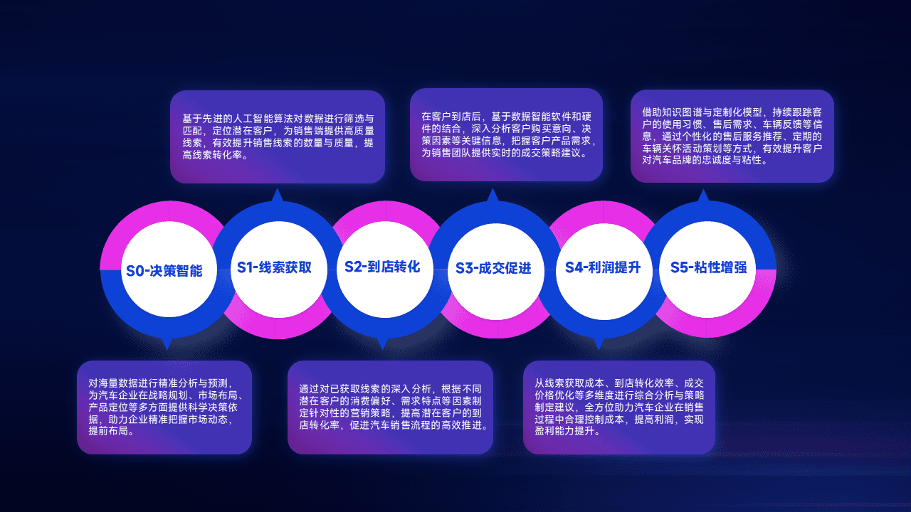 通过拓宽潜在客户来源、、优化线索分配并提高到店转化率,,以增强销售效率。。同时,,利用线索数据不断优化分析模型,,有效提升转化率,,,,扩大营销影响力。。。